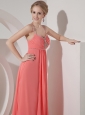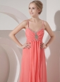 Home >  Prom Dresses >  Best Prom Dresses > Elegant Watermelon Red Chiffon Straps Prom Dress Beading Floor-length