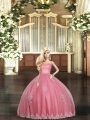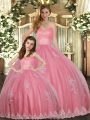 Elegant Watermelon Red Sleeveless Appliques Floor Length Sweet 16 Quinceanera Dress