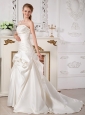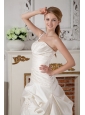 Elegant Wedding Dress A-line One Shoulder Appliques Court Train Taffeta