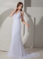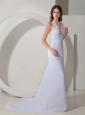 Elegant Wedding Dress Column / Sheath Halter Beading Court Train Chiffon