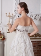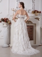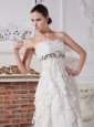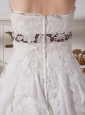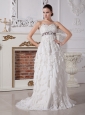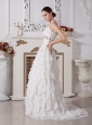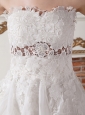 You may be getting tired in finding the dress for your wedding as there are so many styles to choose. Take a look at this one, you will fall in love with it! This style features a strapless neckline and a sash with beadings makes the dress favorable. The whole bodice is covered with a layer of lace appliques which add grace for you. The floor length skirt is composed by layers of chiffon fabric, creating a sense of romance. A hidden zipper up back with a brush train closes the look and adds the charm.