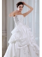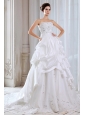 Elegant Wedding Dress Lace and Beading A-line Strapless Chapel Train Taffeta