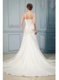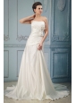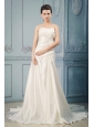 Elegant Wedding Dress With A-line Appliques and Beading Ruching Bow Chapel Train