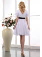 Elegant White A-line V-neck Mini-length Bridesmaid Dress Chiffon Ruch