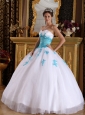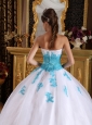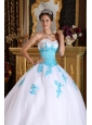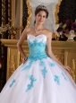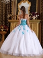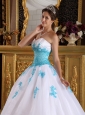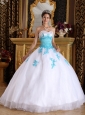 Elegant White and Blue Quinceanera Dress Sweetheart Appliques Organza Ball Gown