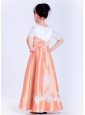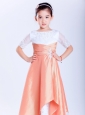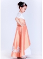 Home >  Flower Girl Dresses > Elegant White and Orange A-line Scoop Appliques Flower Girl Dress Ankle-length Taffeta and Organza
