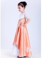 Elegant White and Orange A-line Scoop Appliques Flower Girl Dress Ankle-length Taffeta and Organza