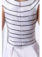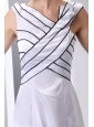 This little white dress has a romantic look that is sure to make you the center of attention at your sweet sixteen party or homecoming. A fabulous dress that features flattering symmetrical straps and trendy v-neck highlighted by folded accents. The contrasting black and white stripes throught out the fitted bodice spice up the simple style. It is comfortable and chic.