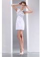 Elegant White Cocktail Dress V-neck Column Mini-length Taffeta