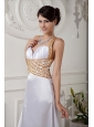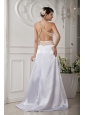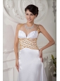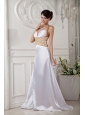 Elegant White  Prom Dress A-line / Princess Straps Brush Train Satin Beading
