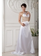 Home >  Prom Dresses >  Elegant Prom Dresses > Elegant White Prom Dress A-line / Princess Straps Brush Train Satin Beading