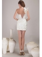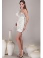 Elegant White Sheath / Column One Shoulder Mini-length Elastic Woven Satin Beading Prom / Homecoming Dress