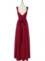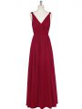 Elegant Wine Red Evening Dress Prom and Party and Military Ball with Ruching and Belt V-neck Sleeveless Zipper
