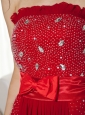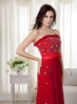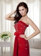 Elegant Wine Red Strapless Beading Prom Dress Brush Train Chiffon Bow Knot