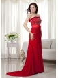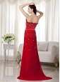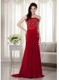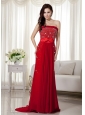 Home >  Prom Dresses >  Best Prom Dresses > Elegant Wine Red Strapless Beading Prom Dress Brush Train Chiffon Bow Knot