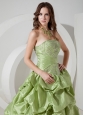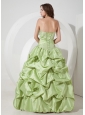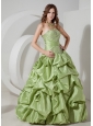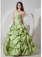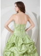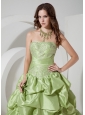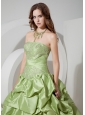 Elegant Yellow Green A-line Strapless Prom Dress Taffeta Appliques Floor-length