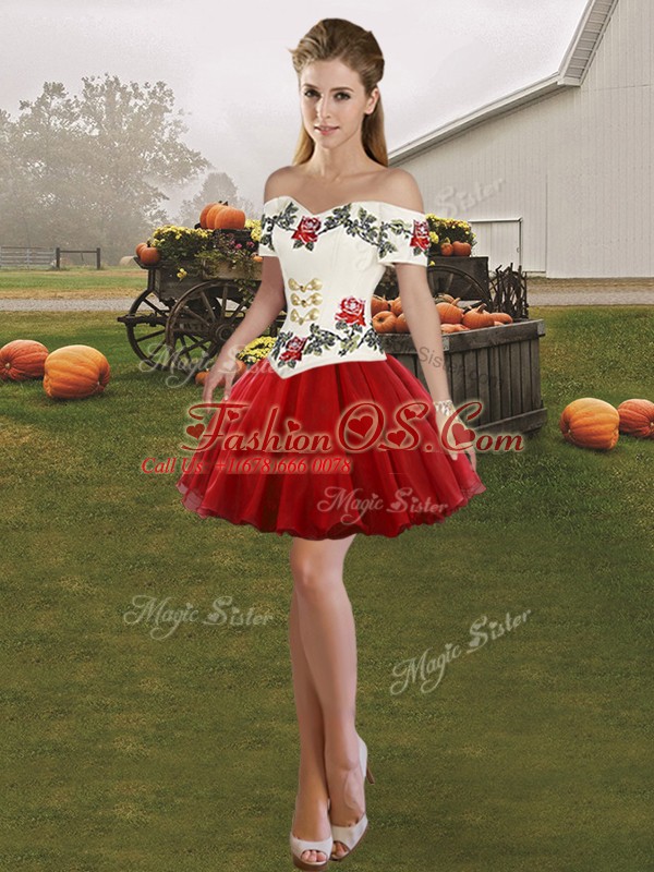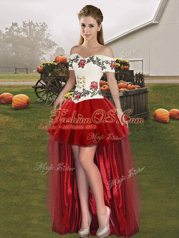 Embroidery 15 Quinceanera Dress White And Red Lace Up Sleeveless Floor Length