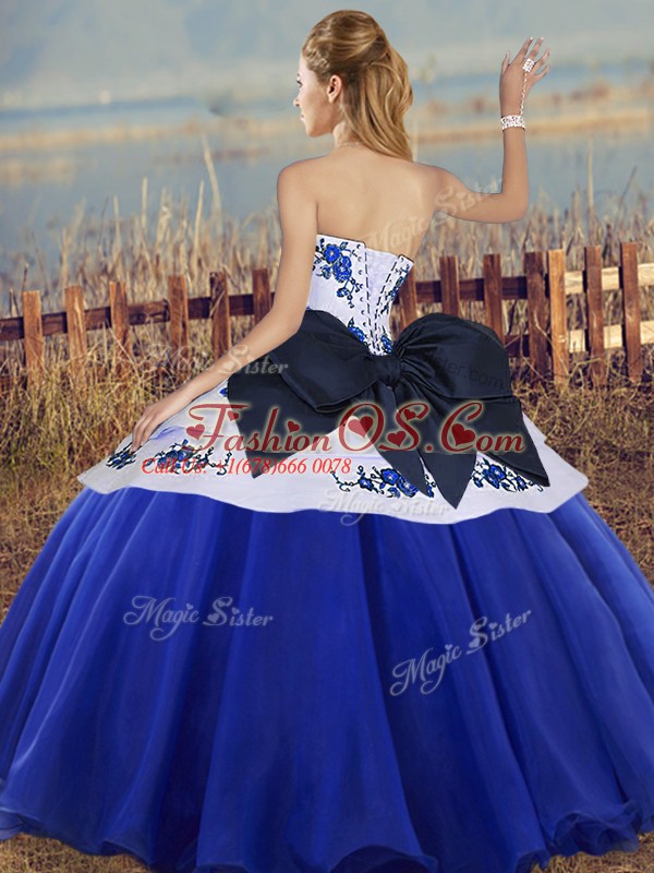 Home >  Quinceanera Dresses >  Quinceanera Dresses 2019 > Embroidery and Bowknot Sweet 16 Dresses Royal Blue Lace Up Sleeveless Floor Length