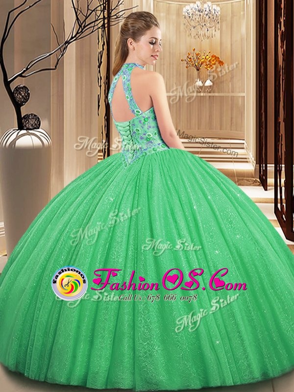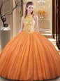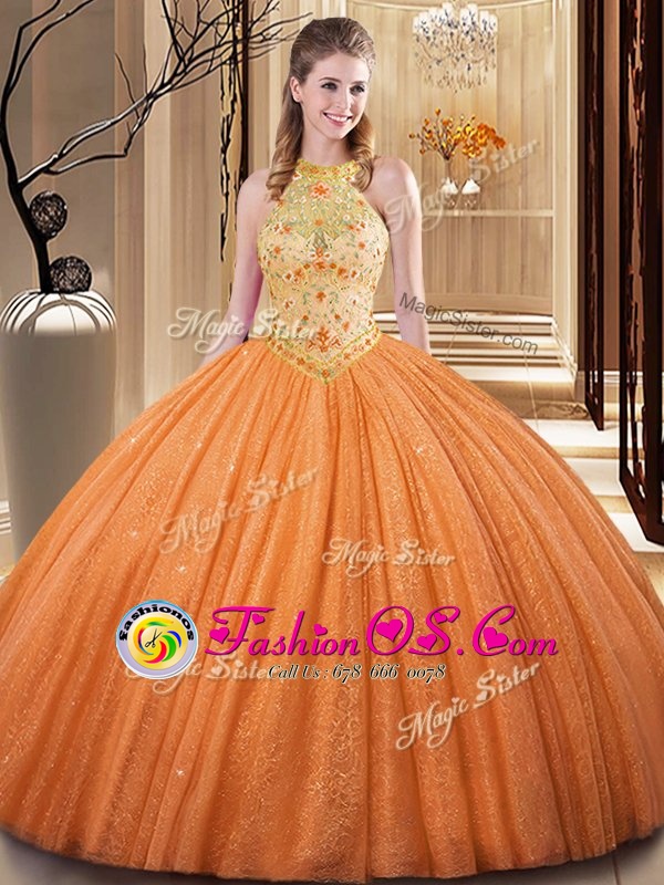 Embroidery and Hand Made Flower Quinceanera Gown Orange Backless Sleeveless Floor Length