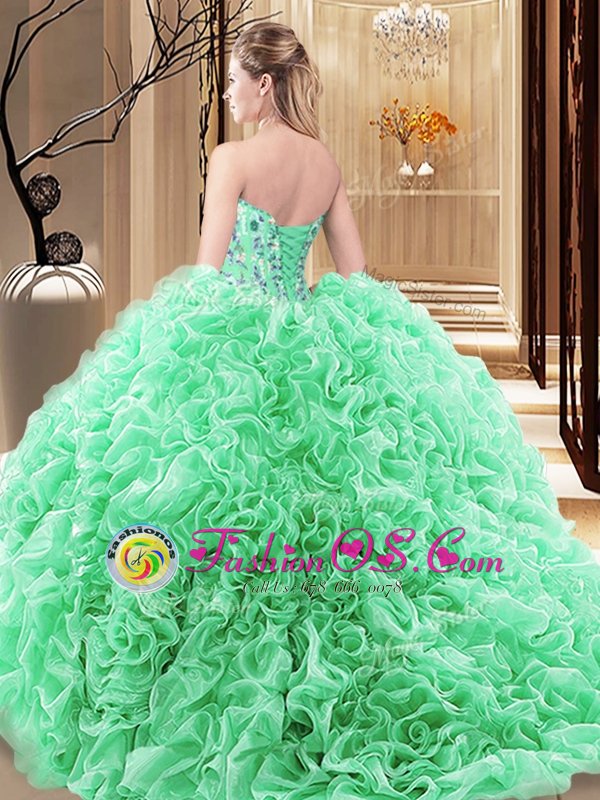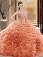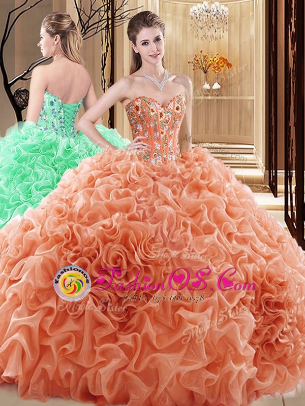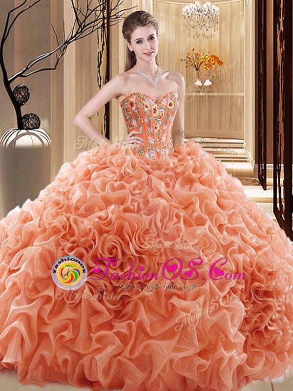 Embroidery and Ruffles and Pick Ups Quinceanera Dress Orange Lace Up Sleeveless Floor Length