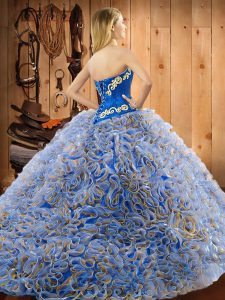 Embroidery Ball Gown Prom Dress Multi-color Lace Up Sleeveless With Train Sweep Train