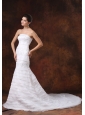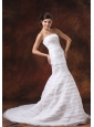 Embroidery Decorate Bodice Mermaid Brush Train Organza Ruffled Layers 2013 Wedding Dress