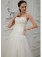 Embroidery Decorate Bodice Sweetheart Neckline Court Train Organza and Taffeta 2013 Wedding Dress
