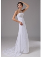 Embroidery Decorate Up Bodice Strapless Brush Train Chiffon 2013 Wedding Dress