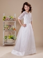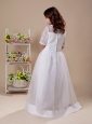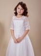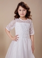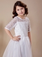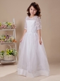 Embroidery Elegant Organza Scoop White A-Line Flower Girl Dress Half Sleeves