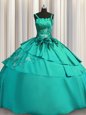 Home >  Quinceanera Dresses >  15 Quinceanera Dresses > Embroidery Floor Length Turquoise Quinceanera Dress Spaghetti Straps Sleeveless Lace Up