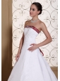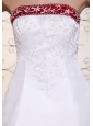 Silhouette: A-line Neckline: Strapless Waist: Fitted Hemline/Train: Chapel Train Sleeve Length: Sleeveless Embellishment: Embroidery Back Detail: Lace-up Fully Lined: Yes Built-In Bra: Yes Fabric: Satin Shown Color: White and Red(Color & Style representation may vary by monitor.) Wedding Venues: Garden, Outdoor, Church, Hall Season: Spring, Summer, Fall, Winter Keyword: Buy Wedding Dresses Online In United States
