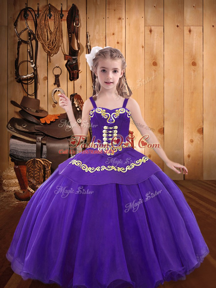 Home >  Special Occasion Dresses >  Pretty Little Girl Pageant Dresses > Embroidery Little Girls Pageant Dress Eggplant Purple Lace Up Sleeveless Floor Length