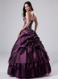 Embroidery Purple Strapless Ball Gown Taffeta Floor-length Quinceanera Dress