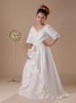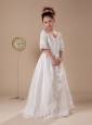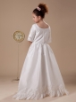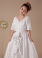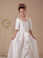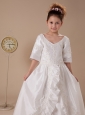 Embroidery V-neck A-Line Taffeta White Flower Girl Dress Half Sleeves