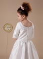 Home >  Flower Girl Dresses > Embroidery V-neck A-Line Taffeta White Flower Girl Dress Half Sleeves