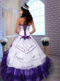Home >  Quinceanera Dresses >  New Arrival Quinceanera Dresses > Embroidery White and Purple Organza Quinceanera Dress with Hand Made Flowers