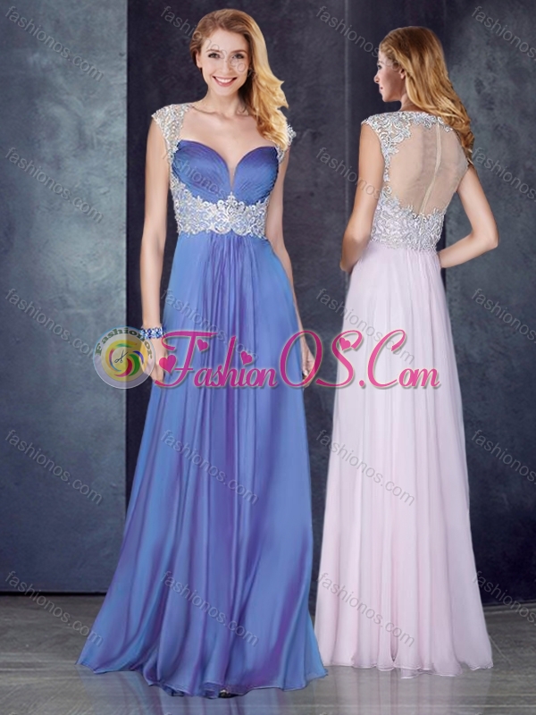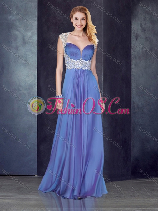 Empire Applique Lavender Bridesmaid Dress with See Through Back