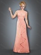 Empire Bateau Peach Mother of The Bride Dress with Appliques