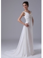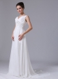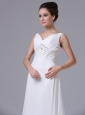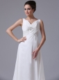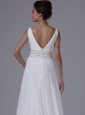 Empire Beaded Decorate Waist Beach Wedding Dress For 2013 V-Neck Chiffon Court Train