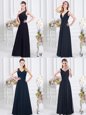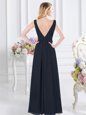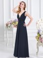 Empire Bridesmaid Gown Navy Blue V-neck Chiffon Sleeveless Floor Length Backless