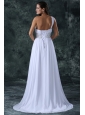 Home >  Wedding Dresses >  Perfect Wedding Dresses > Empire Brush Train Beading Chiffon Zipper Up Wedding Dress