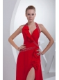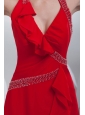 Empire Brush Train Red Beading Halter Chiffon 2014 Prom Dress