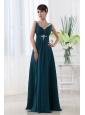 Empire Chiffon Floor-length V-neck Black Beading And Ruching Prom Dress