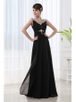 Home >  Prom Dresses >  Best Prom Dresses > Empire Chiffon Floor-length V-neck Black Beading And Ruching Prom Dress