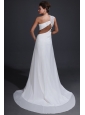 Empire Chiffon One Shoulder Appliques Wedding Dress with Train