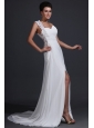 Home >  Wedding Dresses >  Perfect Wedding Dresses > Empire Chiffon One Shoulder Appliques Wedding Dress with Train