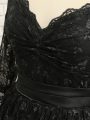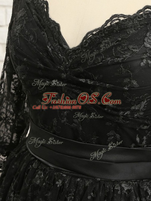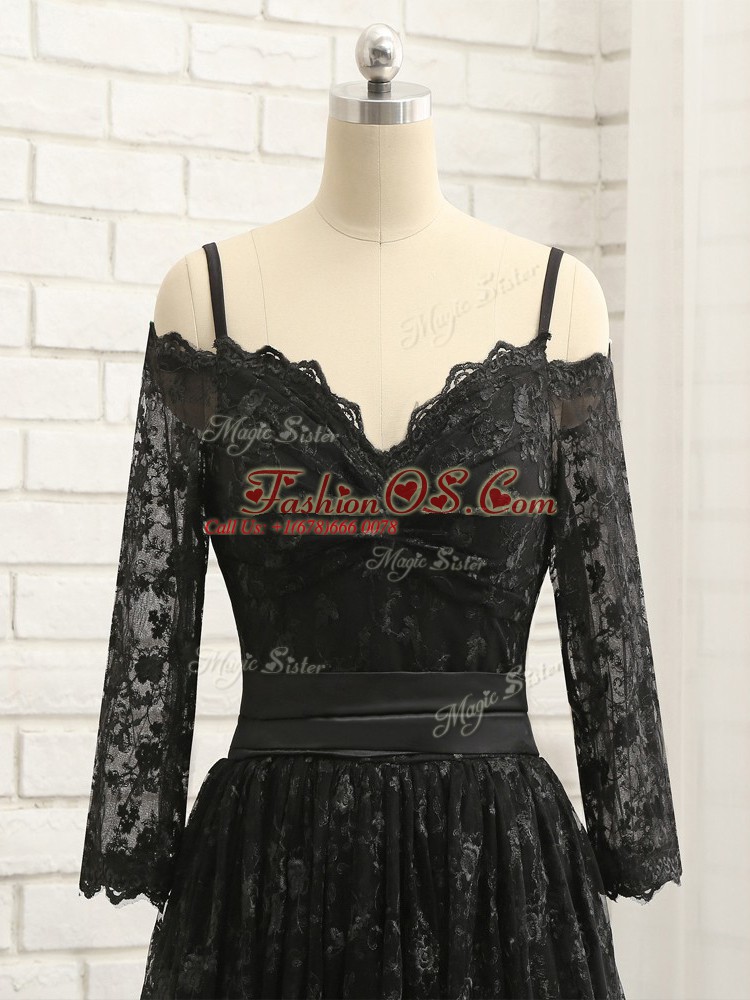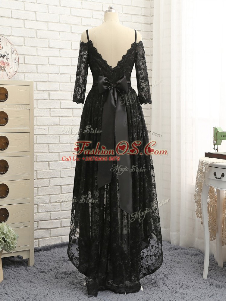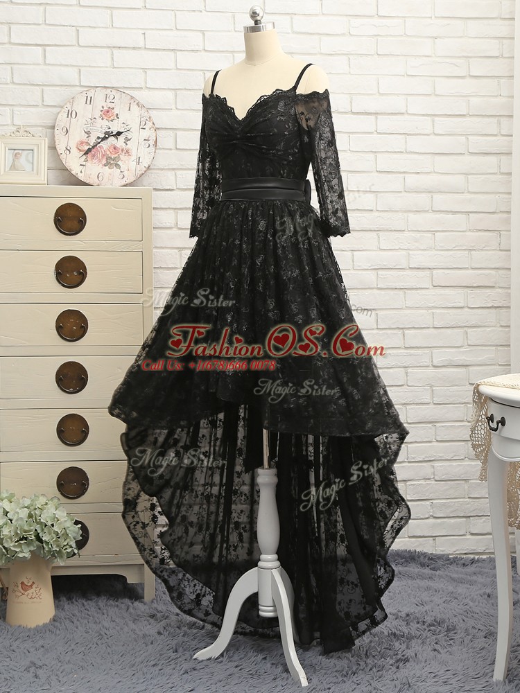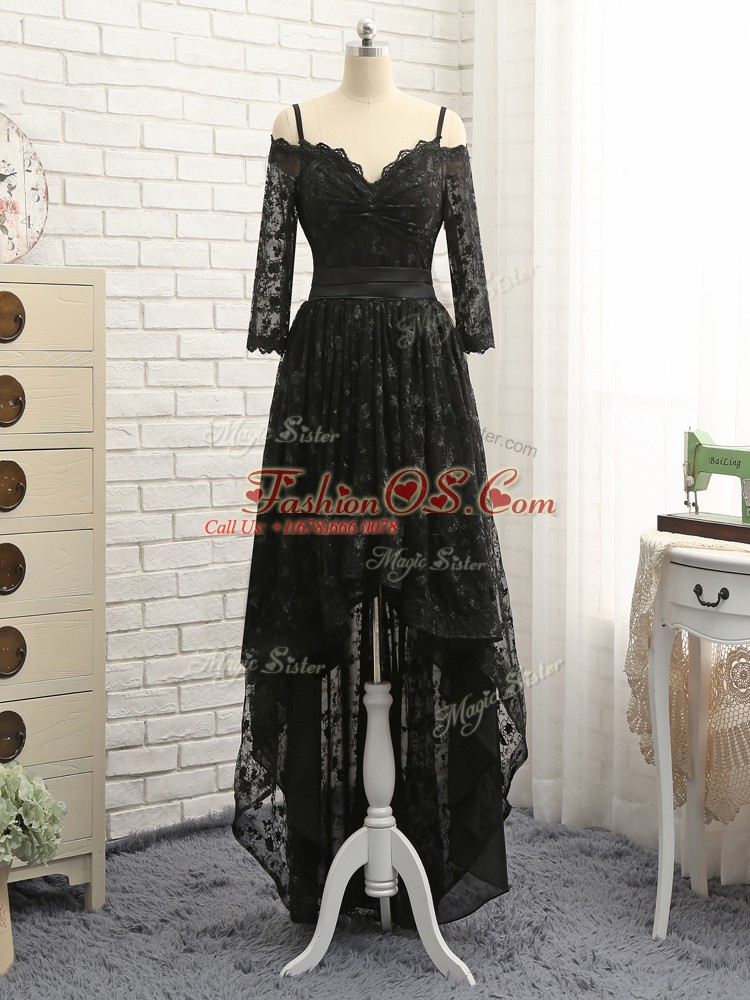 Empire Cocktail Dress Black Off The Shoulder Lace Half Sleeves High Low Zipper