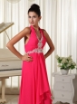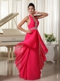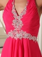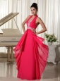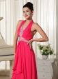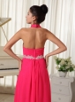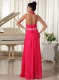 Empire Coral Red Chiffon Halter Waist Appliques With Zipper-up Prom Dress