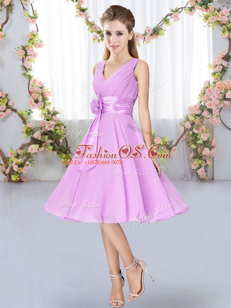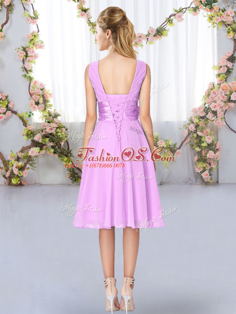 Empire Court Dresses for Sweet 16 Lilac V-neck Chiffon Sleeveless Knee Length Lace Up