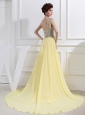 Empire Court Train Yellow Beading One Shoulder Prom Dress